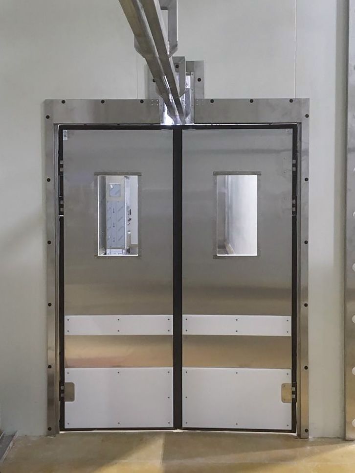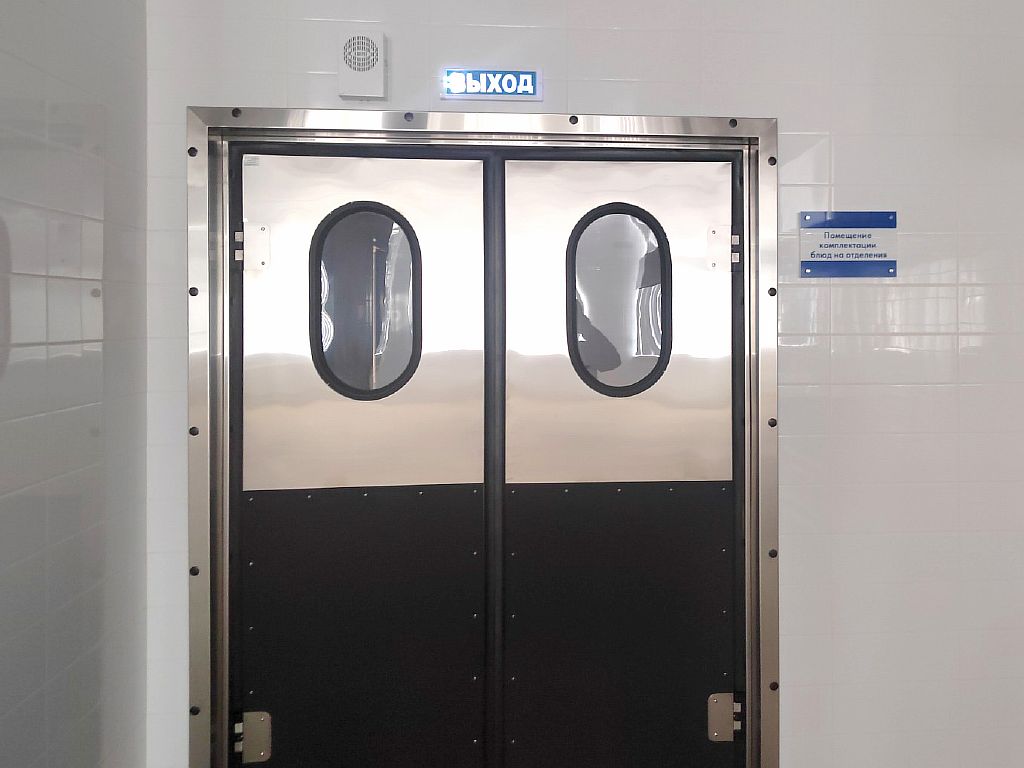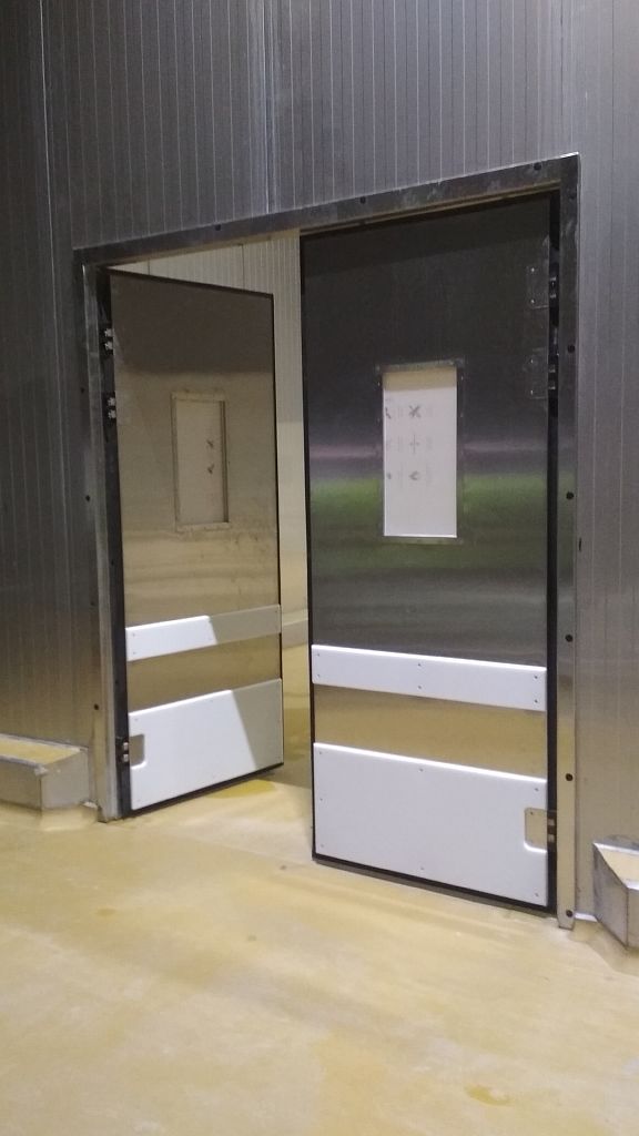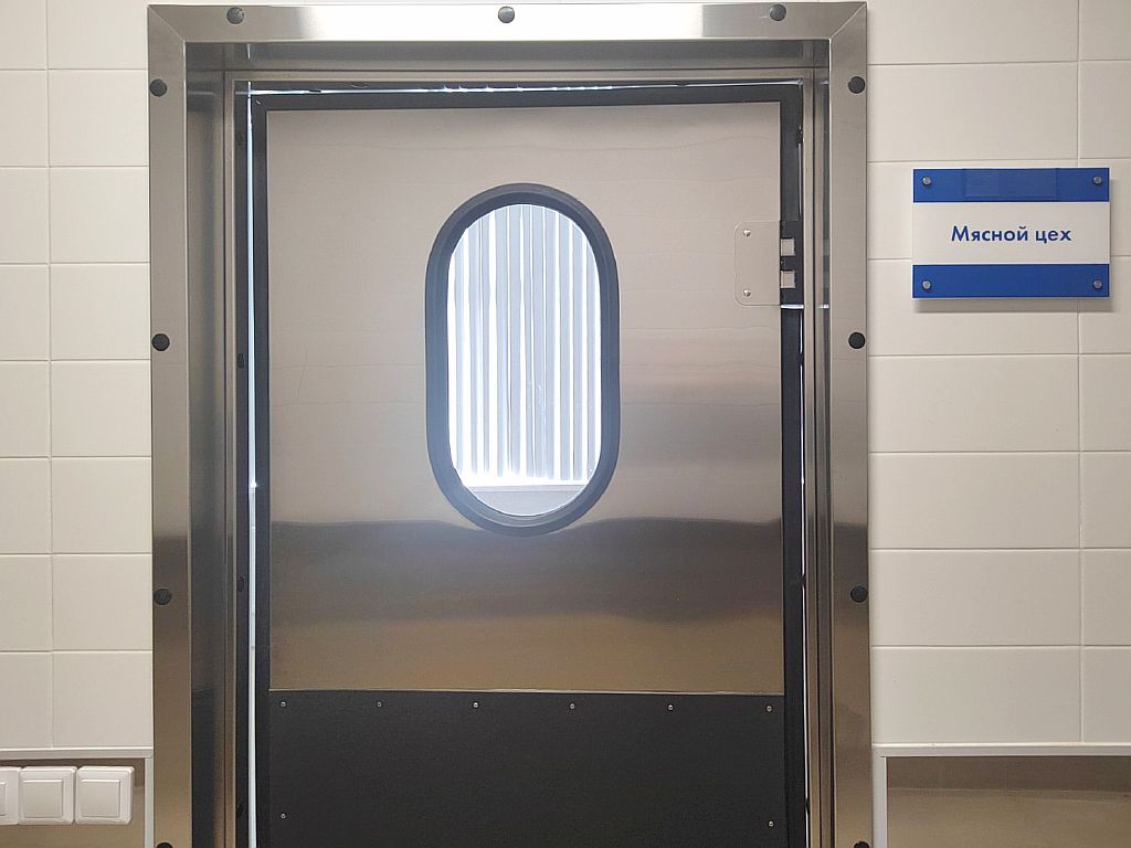 Маятниковые двери специального назначения МД(СН-Fix90) - легкая серия специального назначения, предназначенная для помещений с умеренной нагрузкой и средней проходимостью: офисы, кафе, магазины, медицинские учреждения. Конструкция полотна исключает наличие алюминиевого профиля и представляет собой многослойное полотно (40 мм), обшивками толщиной 0,8мм из нержавеющей стали марки AISI304 и резиновым уплотнителем, рама выполнена из нержавеющей стали марки AISI304 толщиной 1,5мм.