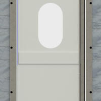 Изготовлено из ударопрочного монолитного поликарбоната толщиной 15 мм. Уникальный конструктив обеспечивает жесткую фиксацию окна в единой плоскости с полотном, не требуя дополнительных крепежных элементов. Исключается образование лишних зазоров и пазов, значительно повышая гигиеничность.