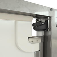 Изготовлено из ударопрочного монолитного поликарбоната толщиной 15 мм. Уникальный конструктив обеспечивает жесткую фиксацию окна в единой плоскости с полотном, не требуя дополнительных крепежных элементов. Исключается образование лишних зазоров и пазов, значительно повышая гигиеничность.