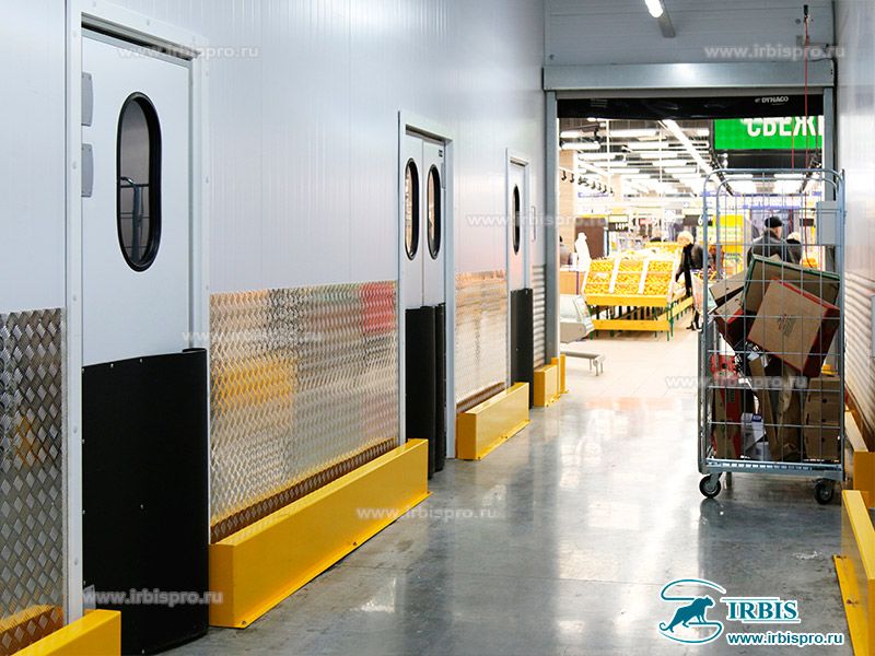 - в местах прохода людей, провоза ручных тележек с грузом небольшой высоты (ограничено высотой защитного бампера);