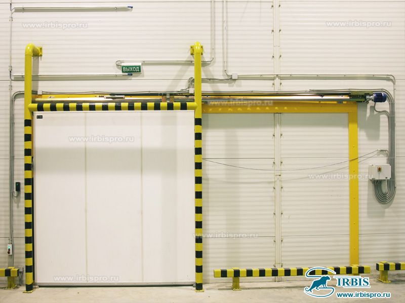 Откатные противопожарные двери предназначенны для среднетемпературных и морозильных камер, складов, производств с интенсивным движением погрузочной техники и других помещений с повышенными требованиями к пожарной безопасности. Двери выпускаются в двух вариантах:
