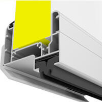Обеспечивает дополнительное поджатия полотна к раме и порогу в конечной фазе закрытия. Направляющая устанавливается на полотне и защищает нижнюю кромку полотна от механического воздействия.